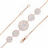 This enchanting bracelet features a sequence of concentric circular motifs, each encrusted with meticulously set lab-grown diamonds that radiate from a central clustered core. The design, rendered in warm rose gold, evokes the mystical allure of moonlit nights and shimmering celestial reflections, adding a magical touch to your wrist. The alternating arrangement of gradients in halo sizes creates a balanced play of brilliance and elegance, making it an exquisite accessory for both modern celebrations and everyday sophistication.