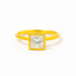 The Golden Square Solitaire Lab Grown Diamond Ring is a contemporary and elegant piece showcasing a brilliant princess-cut lab grown diamond. The lab grown diamond is characterized by its square shape and exceptional sparkle. It is securely embraced by a full bezel setting crafted from warm, polished yellow gold. This bezel setting not only offers a modern and sleek look but also provides excellent protection for the lab grown diamond's edges. The clean lines of the bezel highlight the geometric precision of the princess cut. The band of the ring is also made from yellow gold, maintaining a cohesive and luxurious aesthetic. Its smooth, polished surface ensures a comfortable fit and complements the warmth of the bezel setting. This ring is a perfect choice for those who appreciate a blend of modern design and classic elegance.