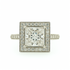 The Sovereign Square Solitaire Lab Grown Diamond Ring is a bold and radiant expression of modern elegance. At its heart lies a magnificent princess-cut solitaire lab grown diamond, known for its sharp, clean lines and brilliant sparkle. This central lab grown diamond is meticulously set within a double halo of shimmering pavé round lab grown diamonds, creating a captivating frame that amplifies its brilliance. The squared silhouette of the halo echoes the princess cut, adding a touch of contemporary geometry to the design. The slender band, also adorned with pavé lab grown diamonds, enhances the ring's overall sparkle and sophistication. Crafted in rich white gold, this ring exudes a regal presence, making it a perfect symbol of strength and enduring love.