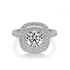 Twilight Halo Solitaire Lab Grown Diamond Ring embodies the enchanting beauty of the evening’s first sparkle, capturing the mesmerizing essence of twilight in every detail. At its heart is a brilliant round-cut solitaire lab grown diamond, elegantly set within a double cushion-shaped halo of dazzling pavé round lab grown diamonds that radiate luminous grace from all angles. The finely crafted band, adorned with a continuous row of shimmering lab grown diamonds, enhances the magical glow and mirrors the gentle descent of dusk’s light.