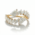 This elegant and fluid Comet Swirl Lab Grown Diamond Ring showcases a graceful band adorned with a sequence of lab grown diamonds. The lab grown diamonds are meticulously set in a flowing, curved line, creating a sense of dynamic movement across the finger. The size of the marquise lab grown diamonds appears to subtly graduate, with larger pear lab grown diamonds anchoring the design and smaller ones tapering off, enhancing the organic, vine-like aesthetic. The yellow gold setting, is delicate yet secure, allowing maximum light to interact with each facet of the lab grown diamonds, resulting in exceptional sparkle.