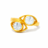 The Vision Bond Lab Grown Polki Ring, crafted in radiant yellow gold, features a captivating bypass design with two prominent, lab grown polki. The lab grown polki are set in unique, eye-shaped settings, adding a touch of intrigue and symbolism. The intertwined, flowing design of the band gracefully connects the two lab grown polki, symbolizing a bond. The open setting of the lab grown polki allows them to capture and reflect light, creating a mesmerizing sparkle.