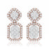 The Art Deco Lab Grown Diamond Earrings are a stunning blend of vintage inspiration and contemporary elegance. These drop earrings feature a captivating two-tiered design, reminiscent of the geometric motifs popular in the Art Deco era. The upper portion of each earring showcases a stylized floral or quatrefoil design, crafted from a cluster of pave-set lab grown diamonds. Below, a rectangular frame encases a central cluster of larger lab grown diamonds, creating a bold and sophisticated statement. The earrings are expertly crafted with rose gold, enhancing their brilliance and creating a striking contrast against the dark background. They are a testament to exquisite craftsmanship and the enduring appeal of Art Deco design.