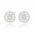 These exquisite earrings showcase a dazzling floral cluster design, meticulously crafted in warm yellow gold and set with numerous sparkling lab grown diamonds. Each earring features a central arrangement of larger, brilliant-cut round lab grown diamonds, tightly clustered together to create a focal point of intense brilliance. Surrounding this central cluster are multiple layers of smaller, round-cut lab grown diamonds, arranged in a radiating pattern that evokes the delicate petals of a flower in full bloom. The setting of the lab grown diamonds is in yellow gold, which provides a rich and classic contrast to the brilliance of the clear lab grown diamonds.